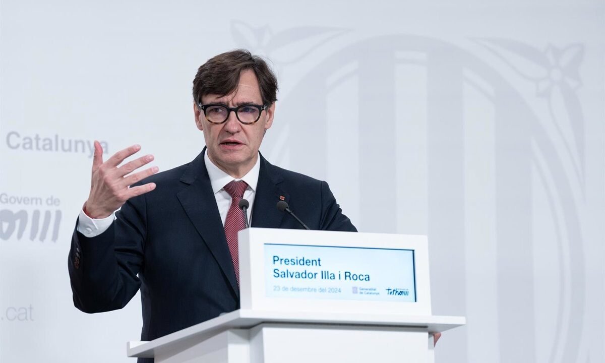 Archivo – El presidente de la Generalitat de Cataluña, Salvador Illa, durante una rueda de prensa (archivo) –…