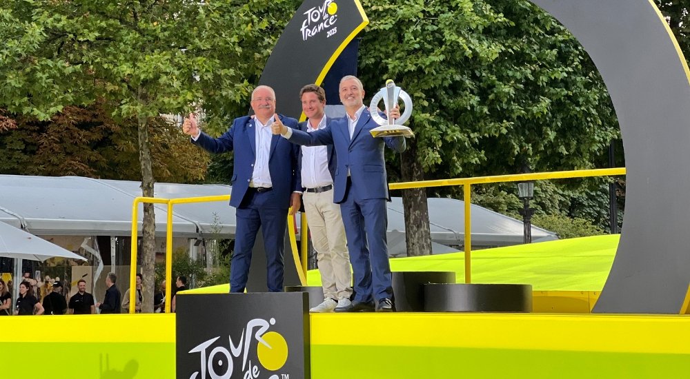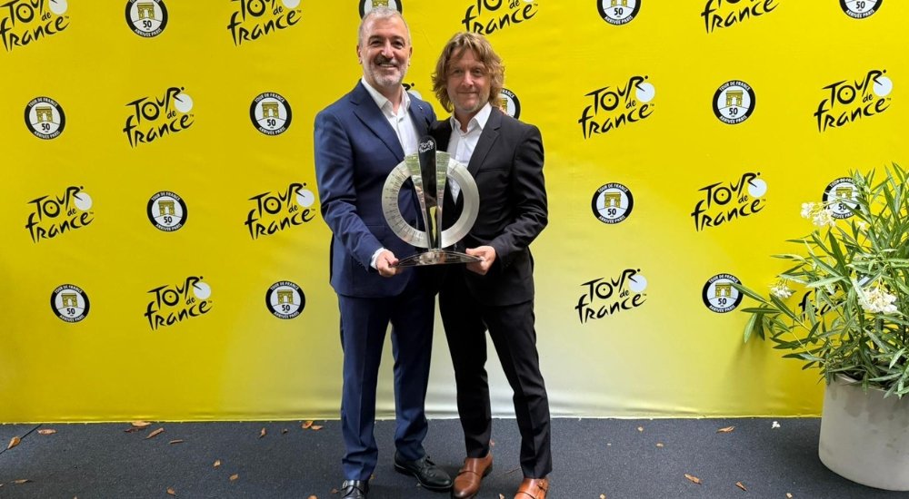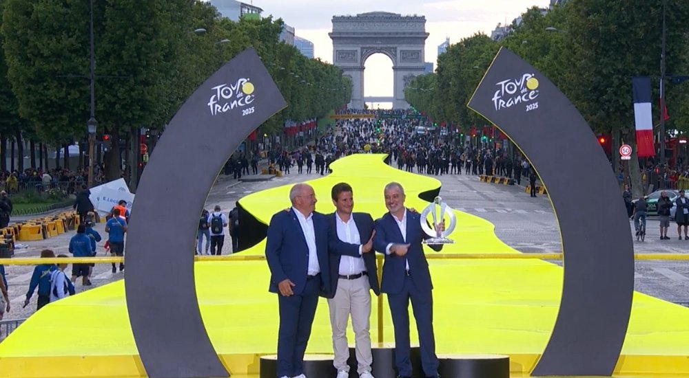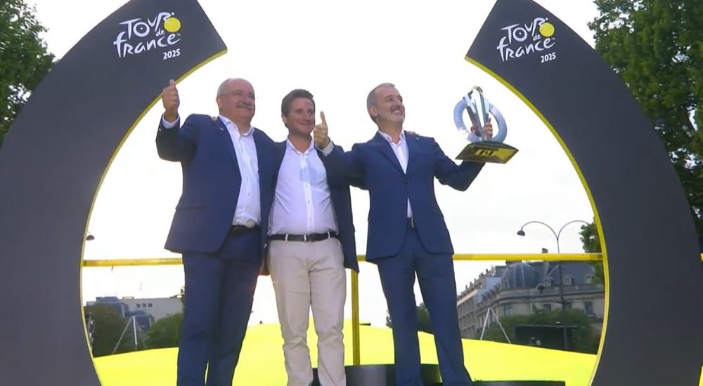 - Mayor Jaume Collboni, present at the final stage of the world’s most important cycling competition, received the trophy from Christian Poiret and Antoine Sillani, in a gesture symbolizing the relay to Barcelona, the city that will host the start of the Tour next year