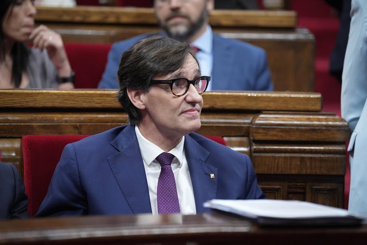 El presidente del Parlament, Salvador Illa, durante un pleno en el Parlament de Catalunya, a 15 de julio de 2025, en Barcelona, Catalunya (España). El Parlament debate en un pleno monográfico las situación de las infraestructuras en Catalunya tras las últ