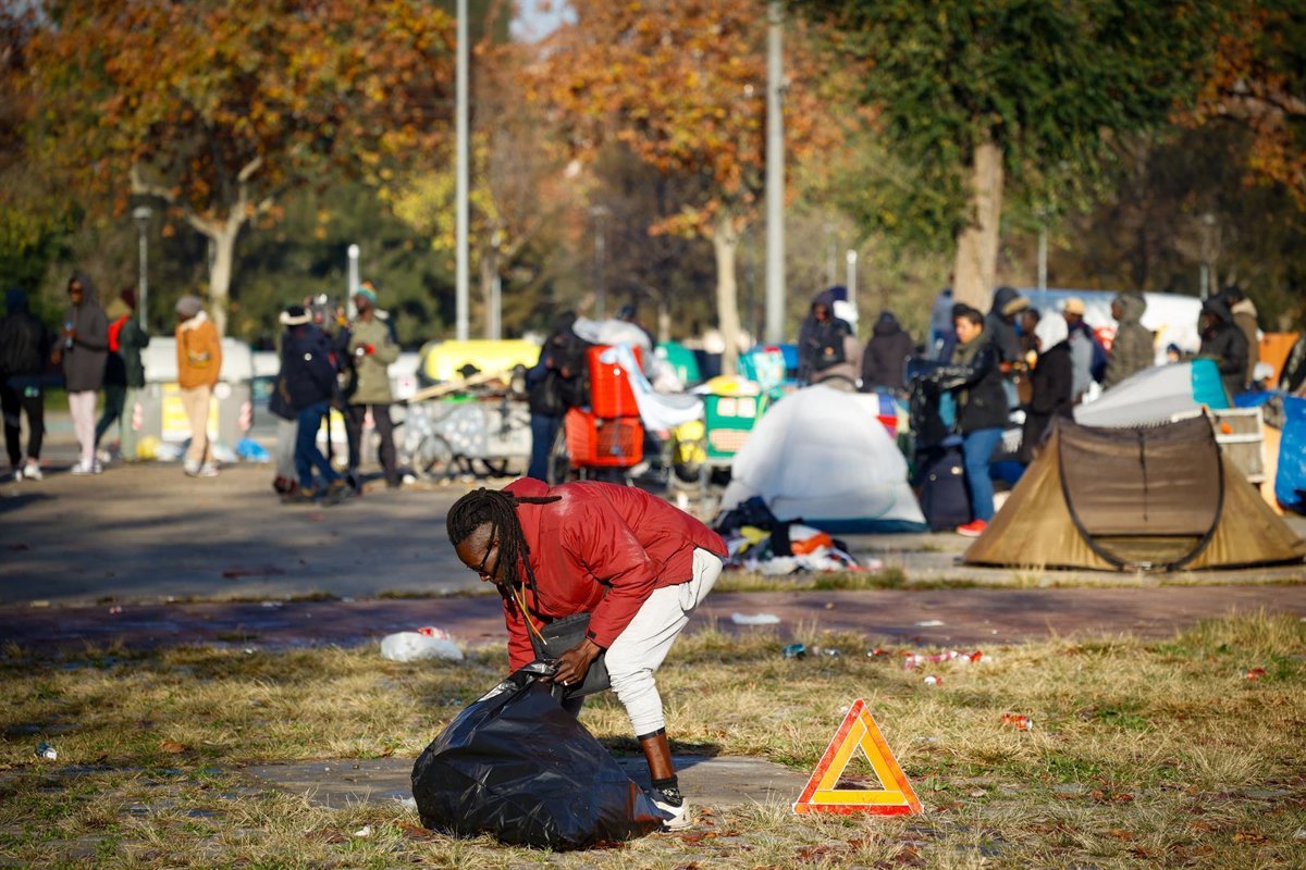 Varias personas desalojadas del instituto B9 de Badalona acampan en los alrededores, a 18 de diciembre de 2025, en Badalona, Barcelona, Catalunya (España).