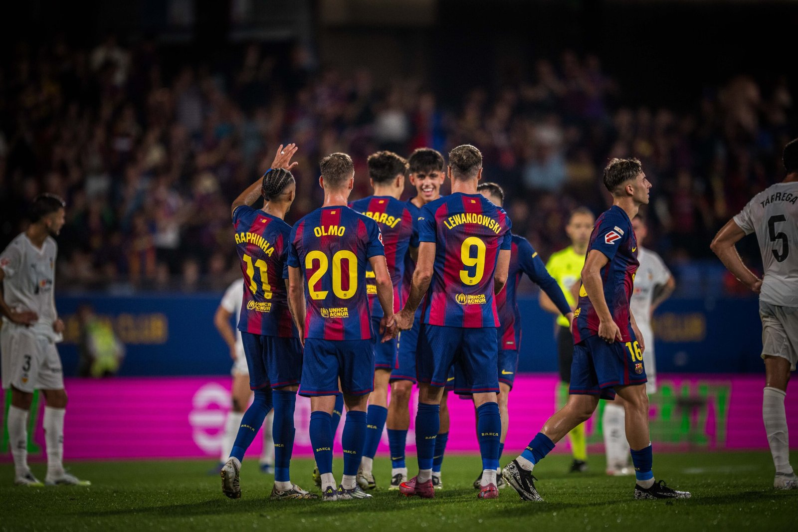 L’Estadi Johan Cruyff va presenciar història aquest diumenge. I és que el partit entre el FC Barcelona i el València, corresponent a la quarta jornada de la Lliga, va deixar una sèrie de fites per al record, sobretot en l’àmbit golejador. Les sis dianes blaugrana van tenir tres protagonistes: Fermín López, Raphinha i Robert Lewandowski. I a parts iguals, ja que els tres van firmar un doblet.